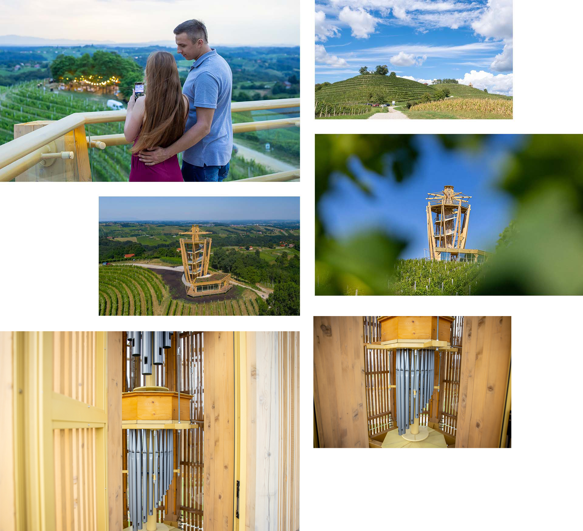 Standing at the top of the viewpoint, you’ll feel deeply connected to the nature and beauty around you. In addition to the remarkable scenery, Mađerkin Breg is known for excellent Međimurje wines, and the tourist offerings continue to evolve. In 2024, a *Goričko sviralo* (Goričko organ) was installed in the tower, allowing visitors to listen to *Međimurske popevke* — traditional songs from Međimurje, listed on the UNESCO Representative List of the Intangible Cultural Heritage of Humanity.